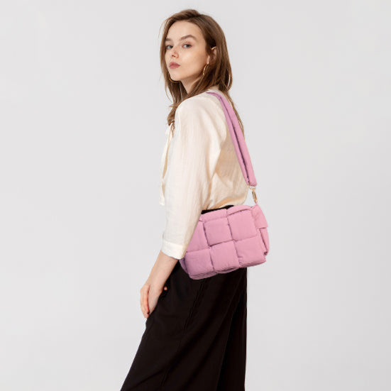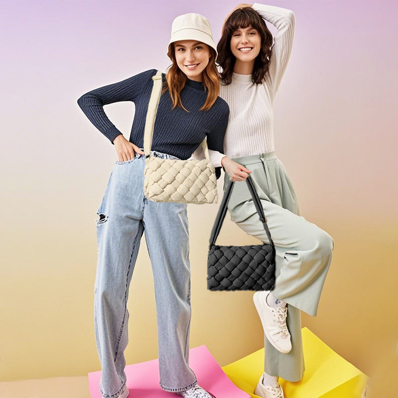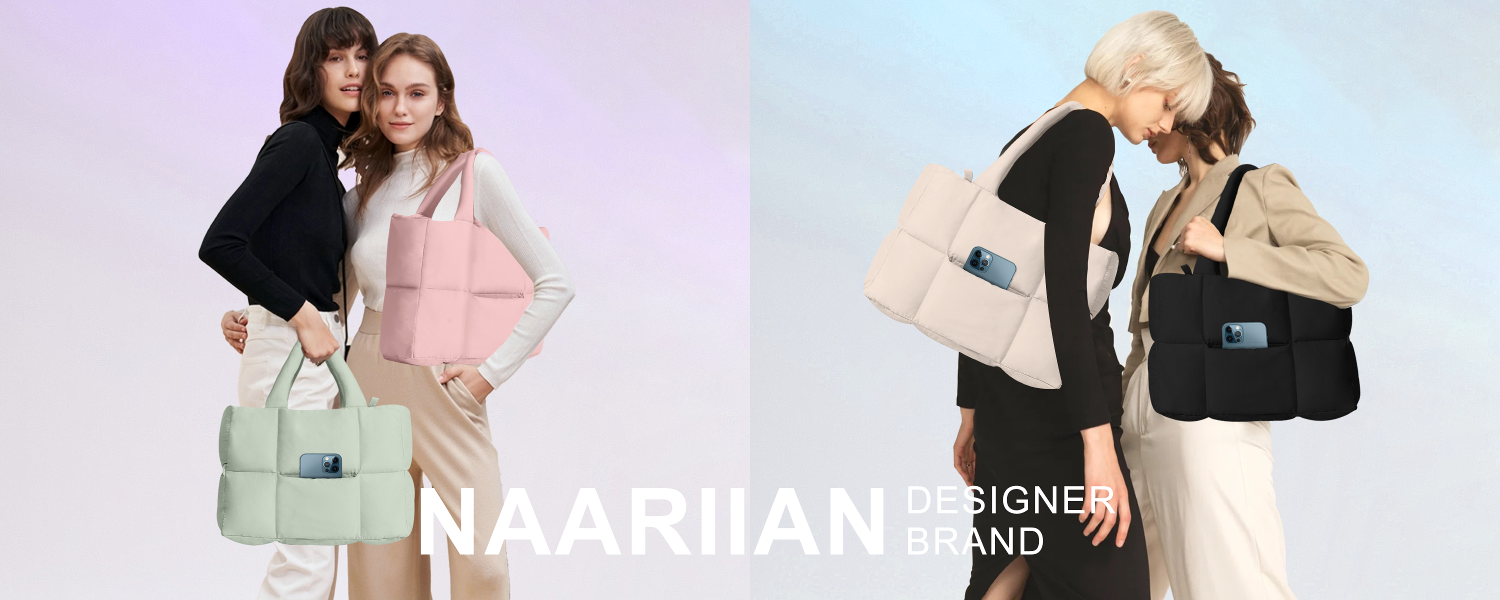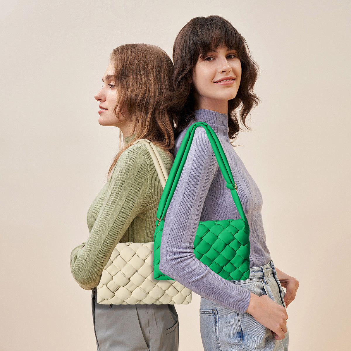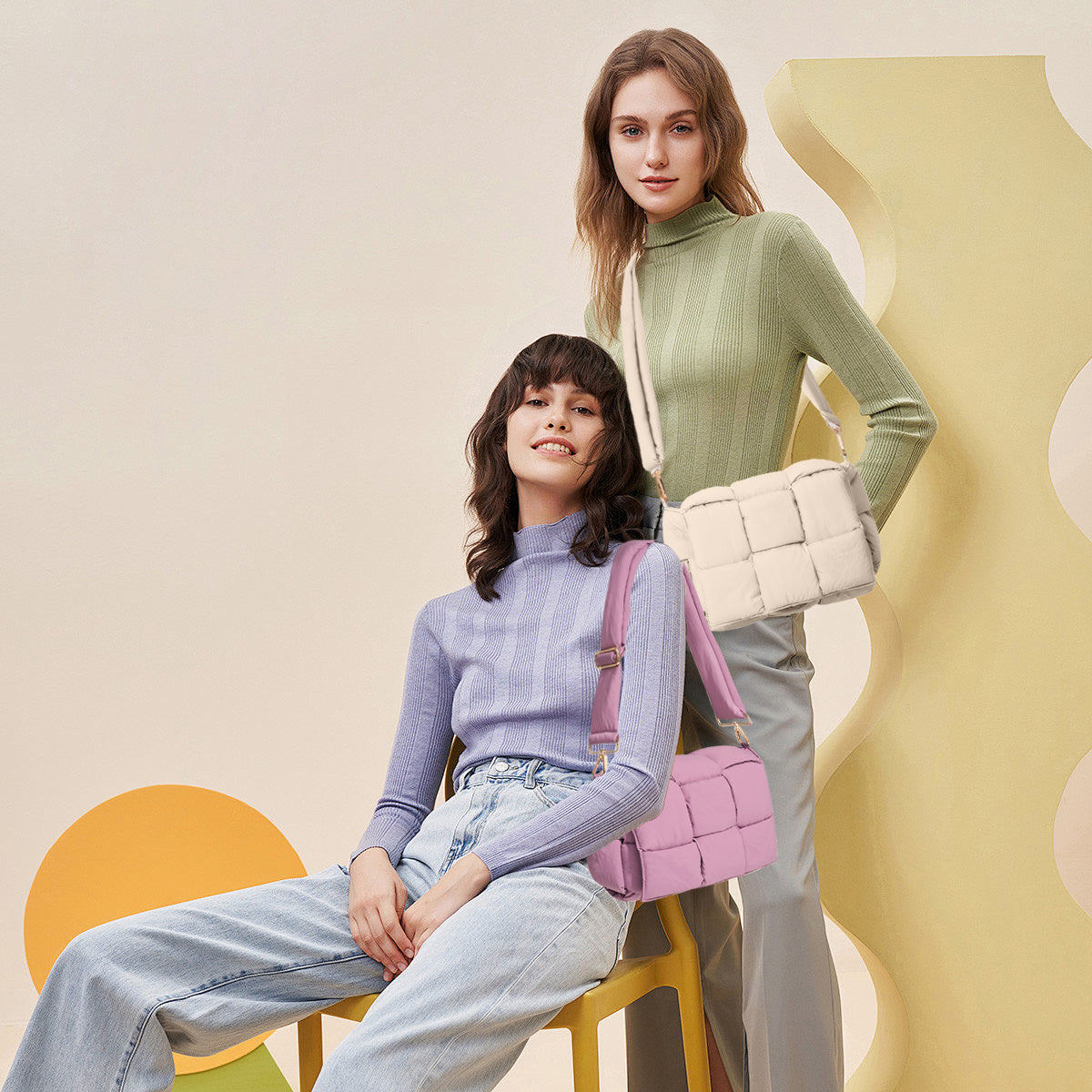 NAARIIAN Puffer shoulder bag Nylon padded woven handbag designer crossbody dupes women down purse(beige)